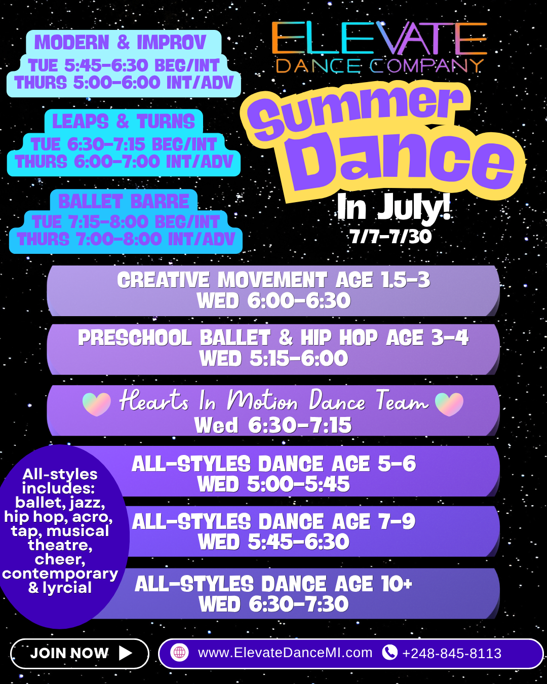 Build confidence, improve technique, and make lasting friendships at our summer dance classes.